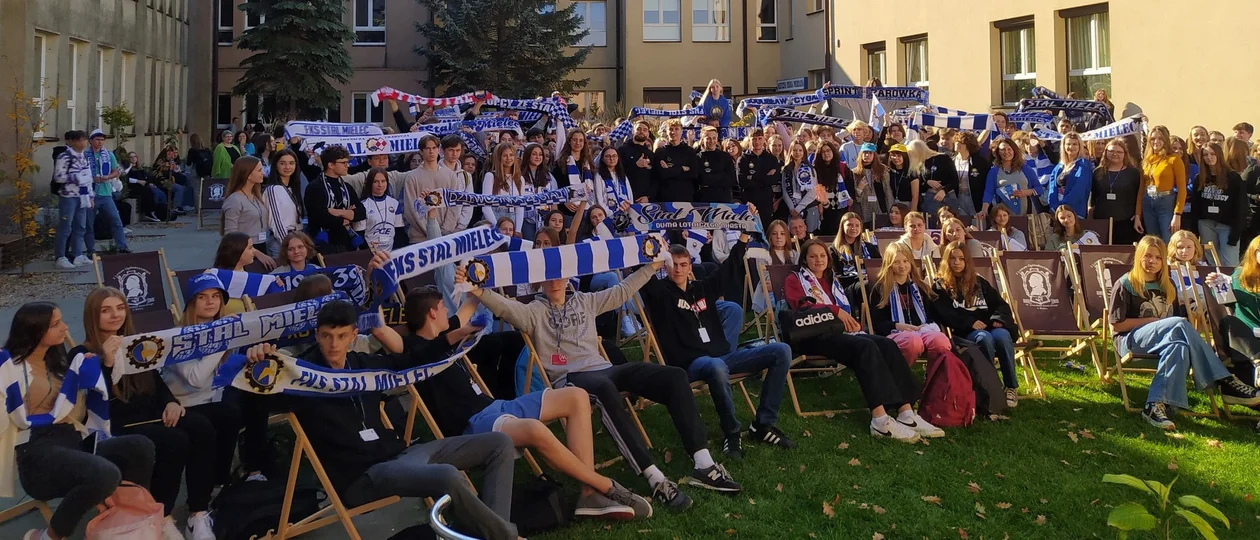 Druga część wizyty to mecz reprezentacji naszej Szkoły (zwycięzcy ubiegłorocznej Licealiady w piłce nożnej) z zawodnikami Stali Mielec. Młodzież została obdarowana gadżetami klubowymi i voucherami na spotkanie pucharowe z Piastem Gliwice.