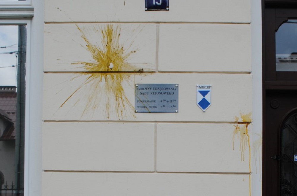 Mężczyzna to 40-letni mieszkaniec gminy Tuszów Narodowy. Policjanci przedstawili zatrzymanemu zarzut przestępstwa przeciwko Ustawie o ochronie zabytków i opiece nad zabytkami. Podejrzany przyznał się do zarzutu, a podczas przesłuchania oświadczył, że obrzucił sąd jajkami ponieważ nie podoba mu się jego działanie.