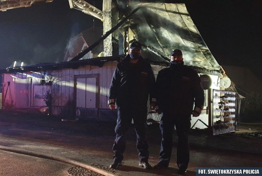 Policjanci wynieśli starszego mężczyznę, a także pomogli wydostać się na zewnątrz kobiecie. Następnie po chwili mundurowi wspólnie z kobietą wrócili do płonącego domu i zaczęli ratować dorobek ich życia. Wynieśli najpotrzebniejsze przedmioty, część wyposażenia domu, a także rzeczy osobiste.