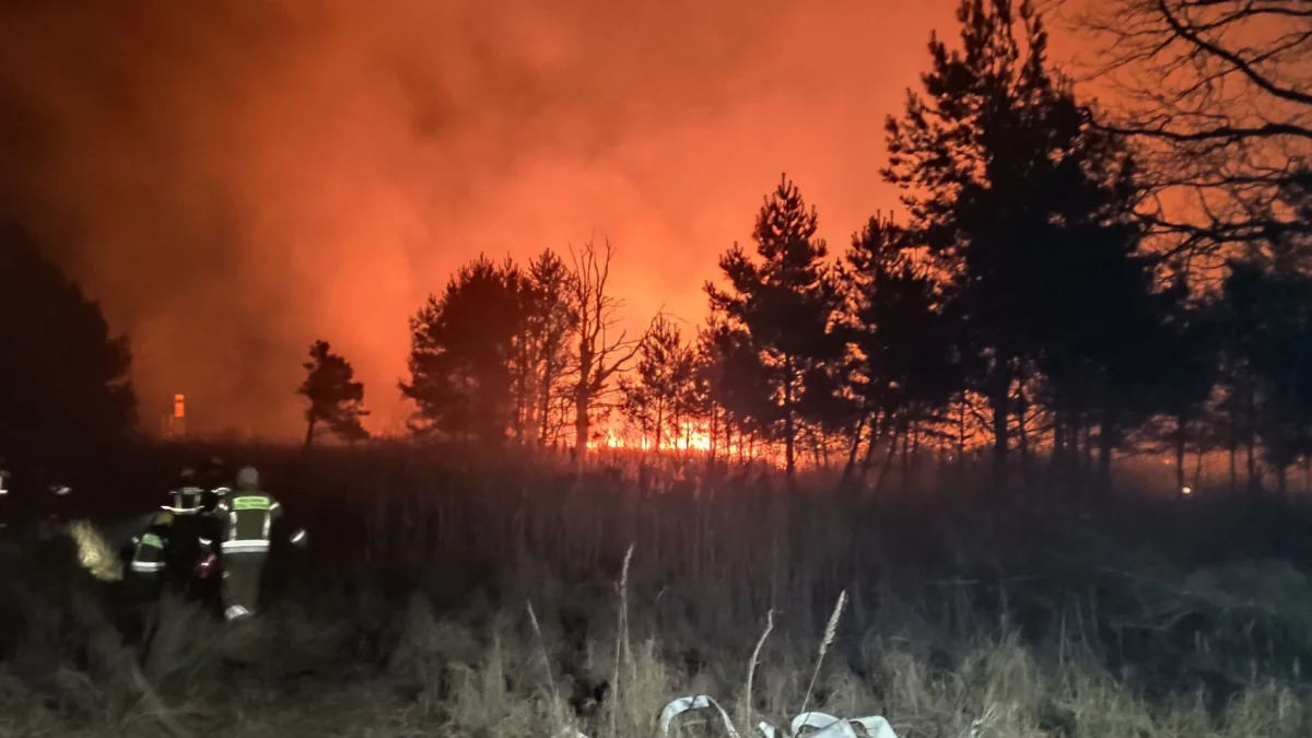 Jednak po godzinie 20 sytuacja stała się jeszcze bardziej kryzysowa, co zmusiło służby do wezwania kolejnych jednostek z regionu. Strażacy walczą z żywiołem w rejonie kapliczki Św. Huberta, a żywioł już strawił znaczną część lasu i okolicznych traw.