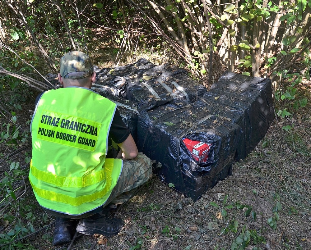 11 września br. w trakcie patrolu rejonów przygranicznych w miejscowości Krowica Lasowa funkcjonariusze Straży Granicznej z Lubaczowa zauważyli mężczyznę który przenosił podejrzane pakunki do zaparkowanego w lesie pojazdu. Po przystąpieniu do kontroli okazało się, że w ośmiu owiniętych i dobrze zabezpieczonych folią pakunkach znajduje się 720 kartonów tj. ok.14,5 tys. paczek papierosów bez znaków polskiej akcyzy. Szacunkowa wartość kontrabandy to ponad 100 tys. zł.