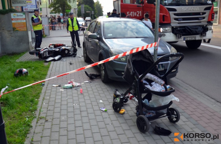 Około godz. 18:00 dyzurny sanockiej policji otrzymał zgłoszenie, że kierujący motorem marki Honda, 22-letni mieszkaniec powiatu sanockiego, jadąc ulicą Kościuszki od ronda w stronę centrum, stracił panowanie nad motorem i wjechał w grupę osób poruszających się chodnikiem.