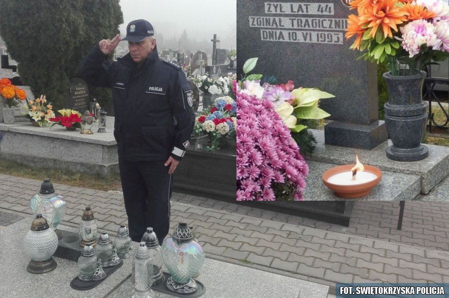 Dzisiaj nadkom. Krzysztof Jaskólski Komendant Komisariatu Policji w Połańcu na jego grobie zapalił znicz. Ten płomień na połanieckim cmentarzu na grobie policjanta jest symbolem pamięci o nim i o innych, którzy ponieśli śmierć pełniąc służę w naszych szeregach.