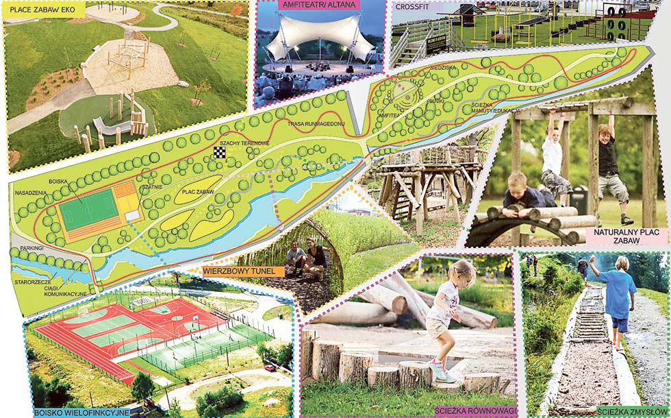 Mieszkańcy uważają, że obecnie najważniejsza jest budowa boiska wielofunkcyjnego, ponieważ jest to bardzo ważny element tego projektu. Wstępny koszt budowy boiska to kwota rzędu 770 tysięcy złotych. W koncepcji zaproponowano także budowę placu zabaw, małego amfiteatru i ścieżek edukacyjnych.
