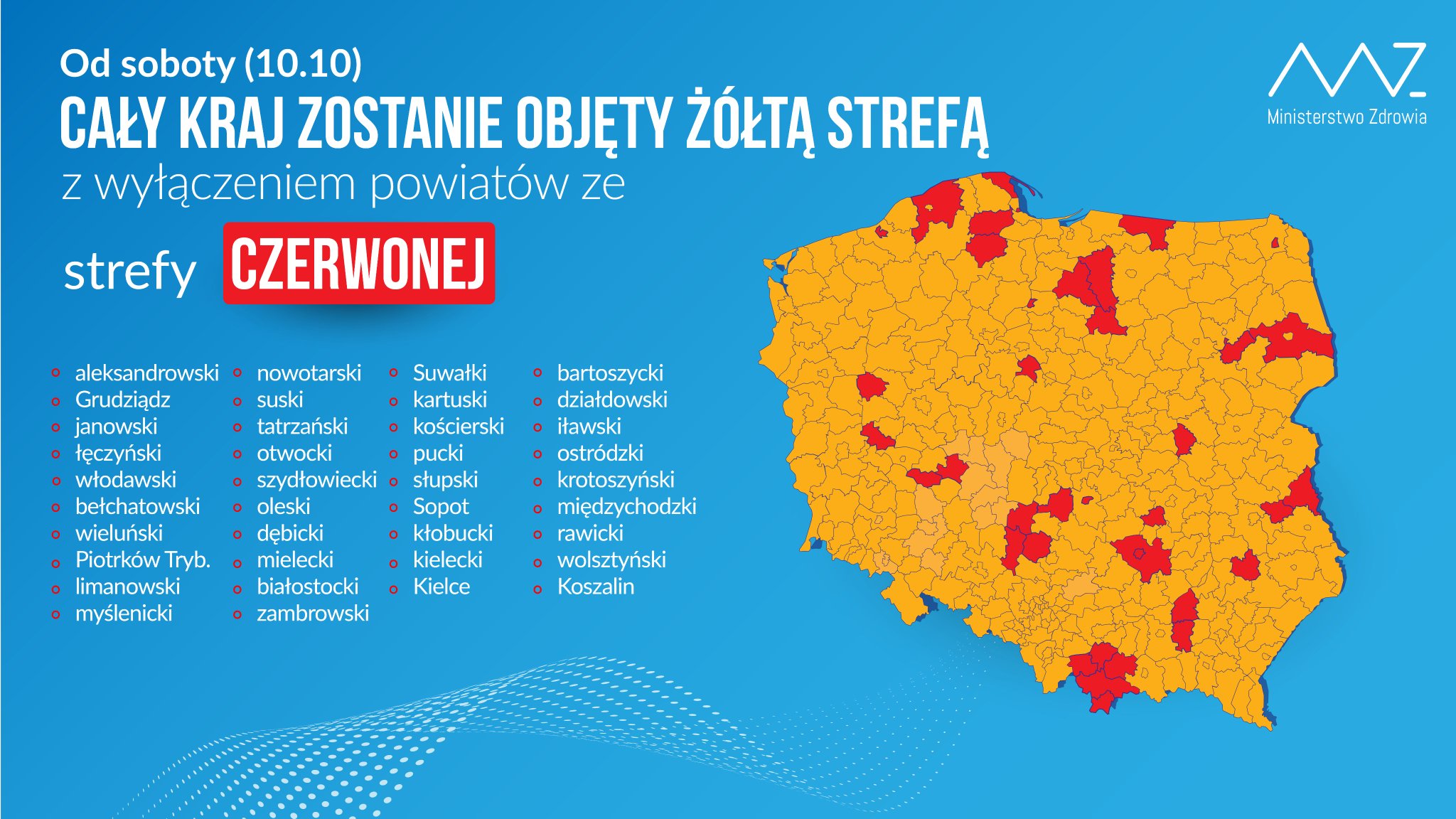 Nowa lista powiatów, która obowiązuje od 10 października