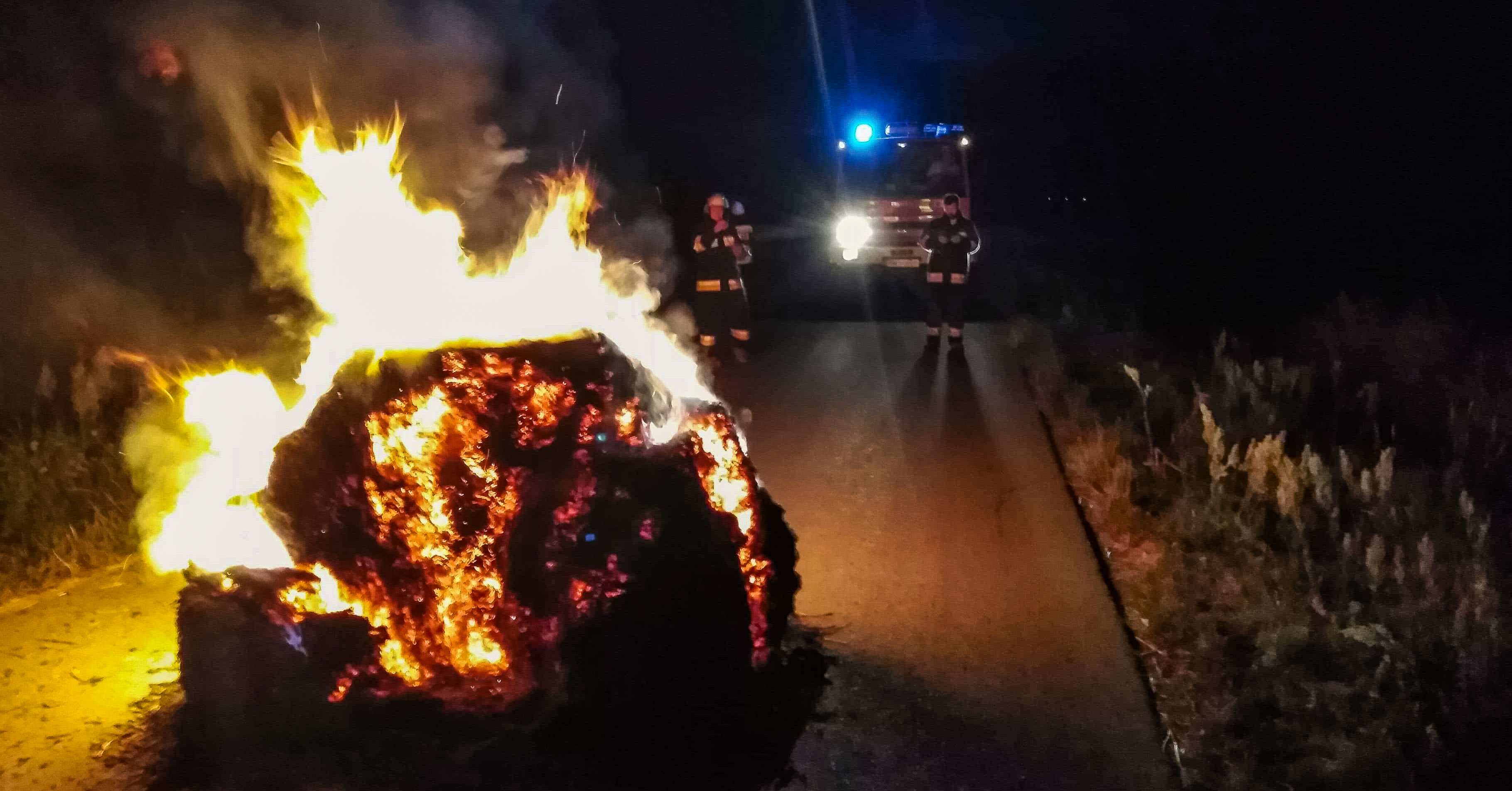 Pożar bala na środku drogi!
