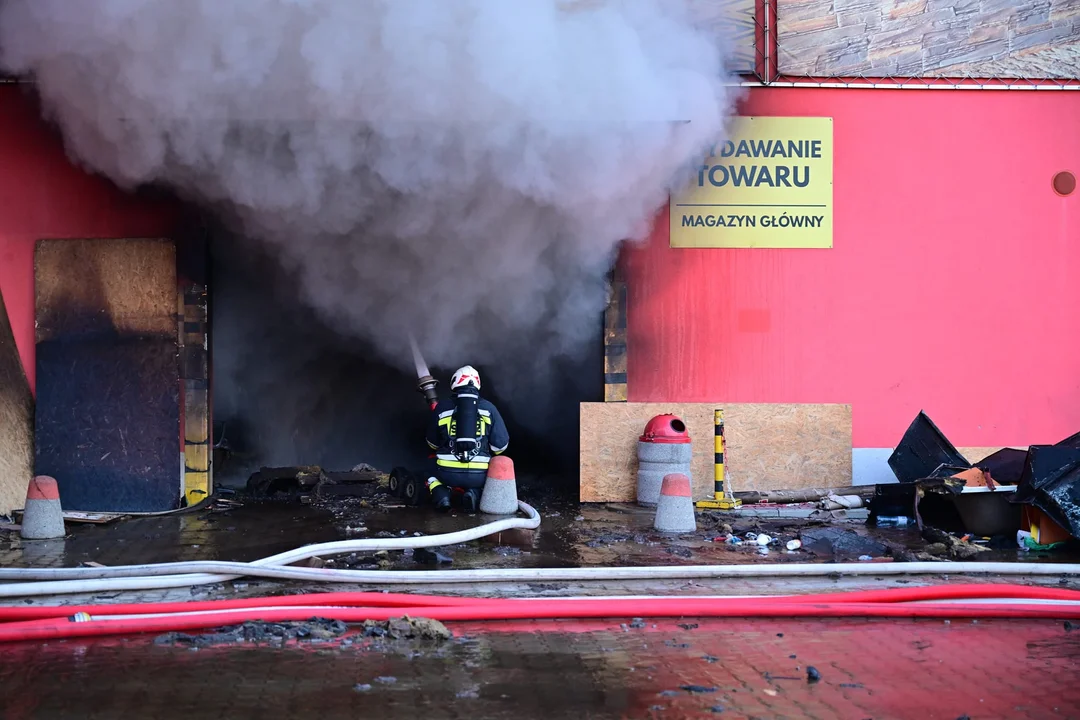 Na miejsce natychmiast przybyła straż pożarna, której liczba członków systematycznie rosła. Obecnie, w czwartek rano, w akcji bierze udział aż 277 strażaków oraz niemal 80 pojazdów Państwowej i Ochotniczej Straży Pożarnej. Jak informuje rzecznik prasowy Podkarpackiego Komendanta Wojewódzkiego PSP w Rzeszowie, bryg. Marcin Betleja, akcja jest wyjątkowo trudna i trwa już drugi dzień. Przewiduje się, że działania mogą potrwać jeszcze kilka godzin. Strażacy walczą z ogniem w części magazynowej, która ma powierzchnię 30 na 90 metrów, próbując jednocześnie chronić przed płomieniami część sklepową.