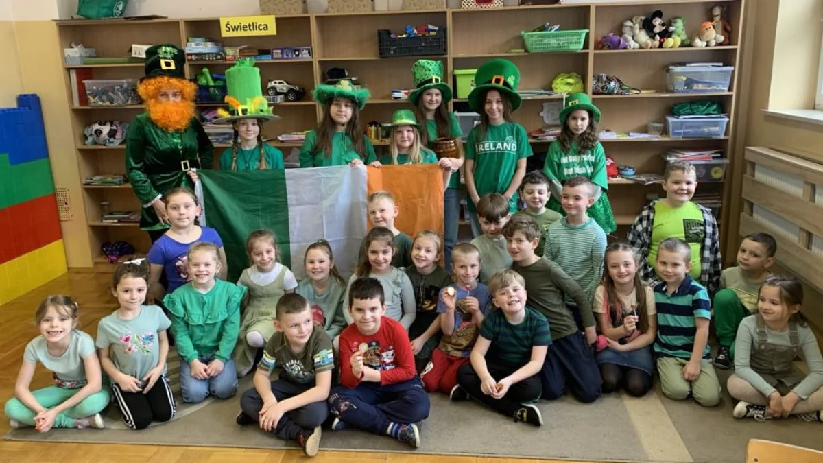Uczniowie szkoły podstawowej im. Św. Jana Pawła II w Radomyślu Wielkim mieli okazję zgłębić historię i kulturę Irlandii dzięki lekcjom języka angielskiego. Poznali nie tylko ciekawostki o św. Patryku, ale też nauczyli się słownictwa związanego z Irlandią, jej symbolami oraz fascynującą legendę o garnku złota na końcu tęczy, strzeżonym przez figlarnego Leprechauna. Wyjątkowym momentem było niespodziewane pojawienie się Leprechauna w szkole, który podzielił się z uczniami złotymi monetami.