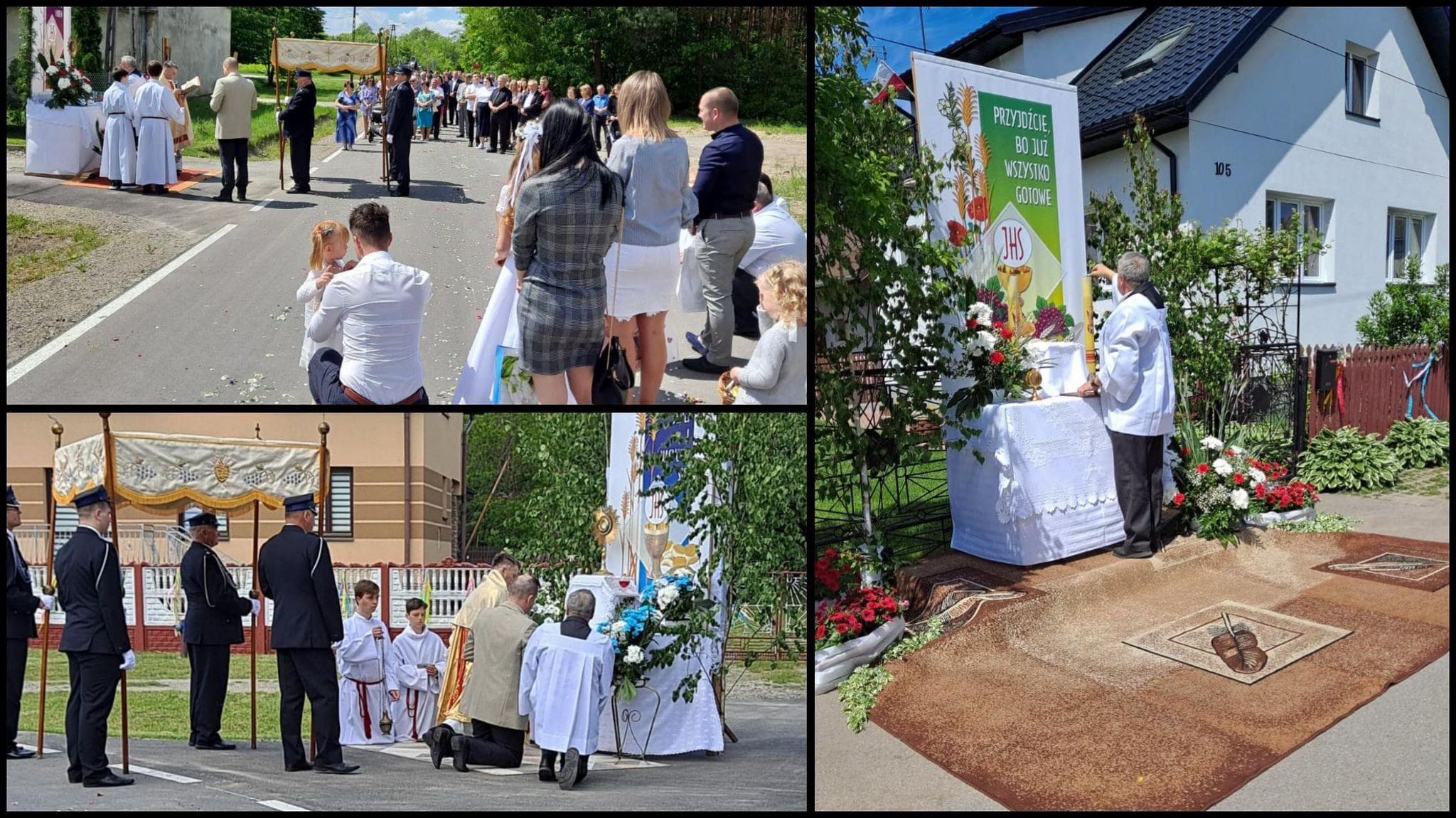 Procesja zatrzymała się przy czterech przystrojonych ołtarzach, przy których odczytane zostały fragmenty Ewangelii. Całość uświetniły, sztandary oraz dzieci, które drogę procesji usypały kwiatami. Nad bezpieczeństwem czuwali strażacy.