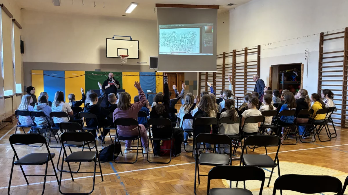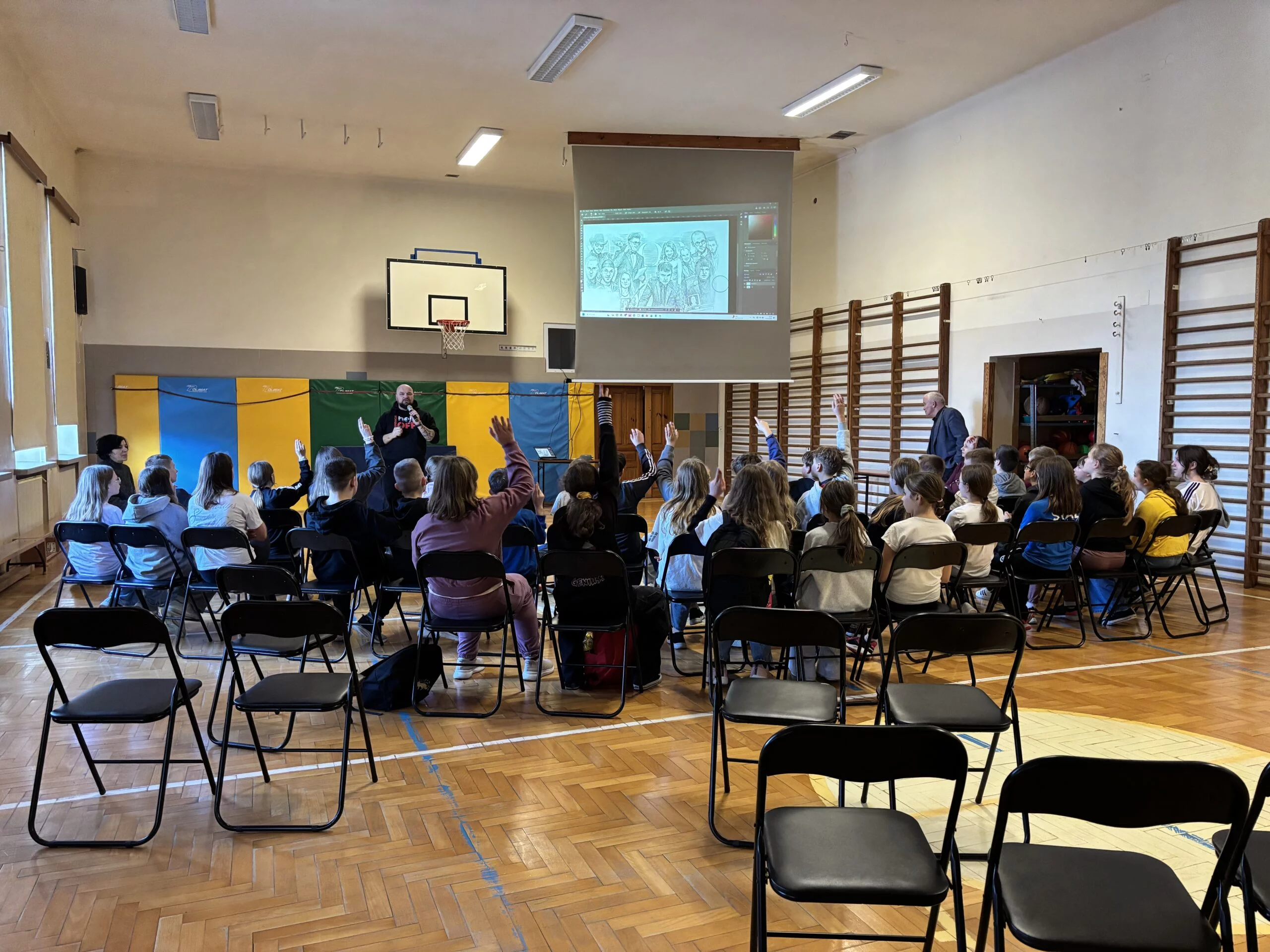 Uczniowie klas V uczestniczyli w warsztatach pt. „Hejt to nie zabawa. Jak odróżnić żart od raniących słów?”, prowadzonych przez Łukasza Gierka z Fundacji Hejt OFF. Podczas spotkania poruszono kwestie granicy między niewinnym żartem a krzywdzącym komentarzem, której nie wolno przekraczać. Uczniowie dowiedzieli się również, jaka odpowiedzialność - w tym także prawna - spoczywa na osobach nieletnich za niewłaściwe zachowania w Internecie. Zajęcia miały charakter interaktywny i skłaniały do refleksji nad własnymi postawami i słowami.