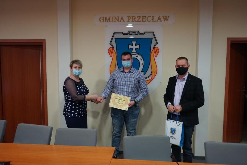 Podczas spotkania burmistrz Przecławia, Renata Siembab, wraz z zastępcą burmistrza, Grzegorzem Skrzypkiem pogratulowali Dawidowi Piłatowi sukcesów oraz wręczyli przyznaną nagrodę pieniężną za osiągnięcie szczególnych wyników sportowych takich jak:
