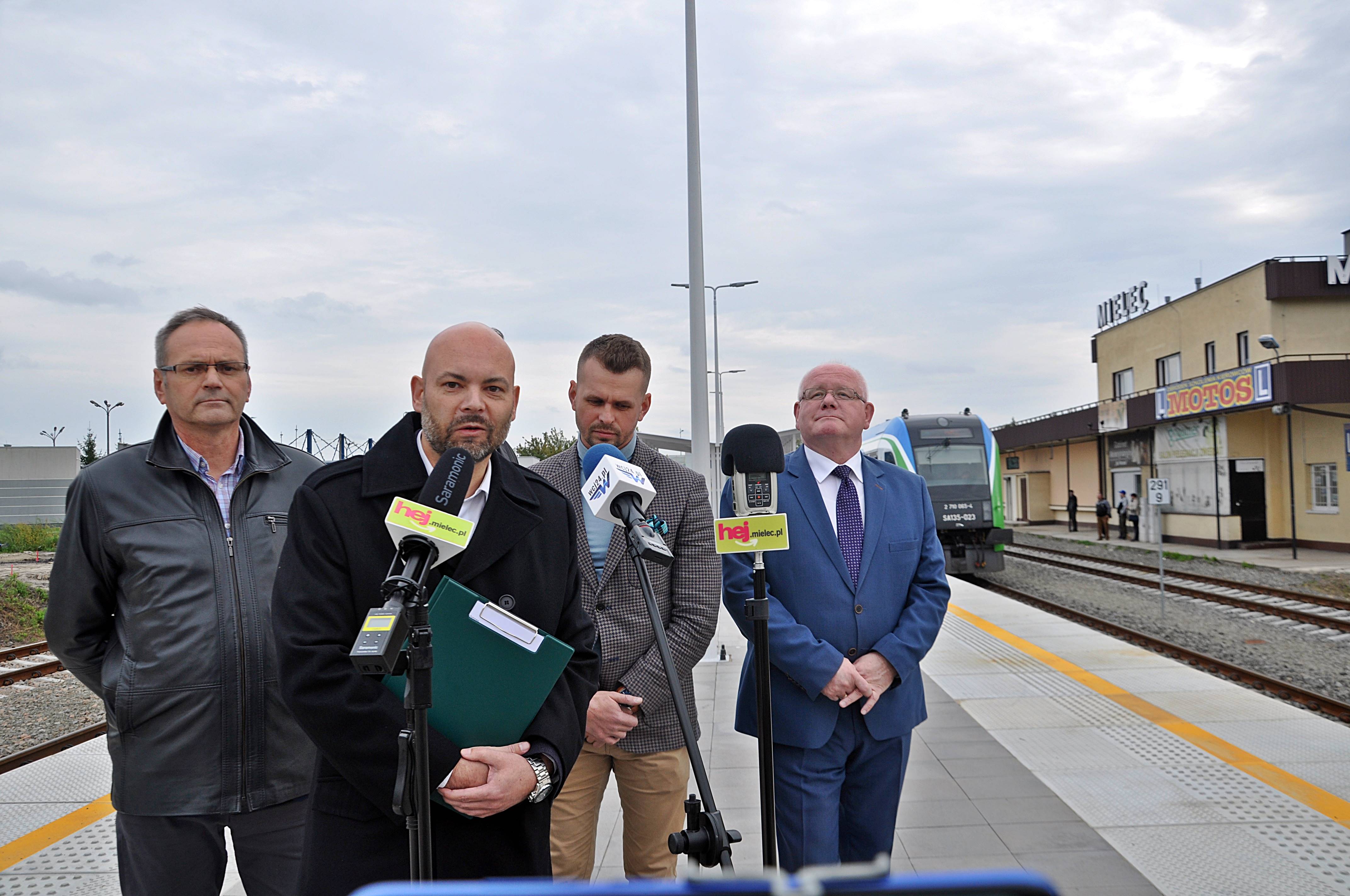 W piątek (24 września) na peronie dworca PKP w Mielcu odbyło się spotkanie samorządowców w mediami. Tematyką briefingu była komunikacja kolejowa. Na początku radny Swół podziękował za przywrócenie osobowych połączeń kolejowych z naszym miastem. - Miasto Mielec bez wątpienia zasługuje na kolej i cieszymy się, że samorząd województwa, parlamentarzyści i władze centralne podzielają ten pogląd. Jesteśmy za to bardzo wdzięczni.