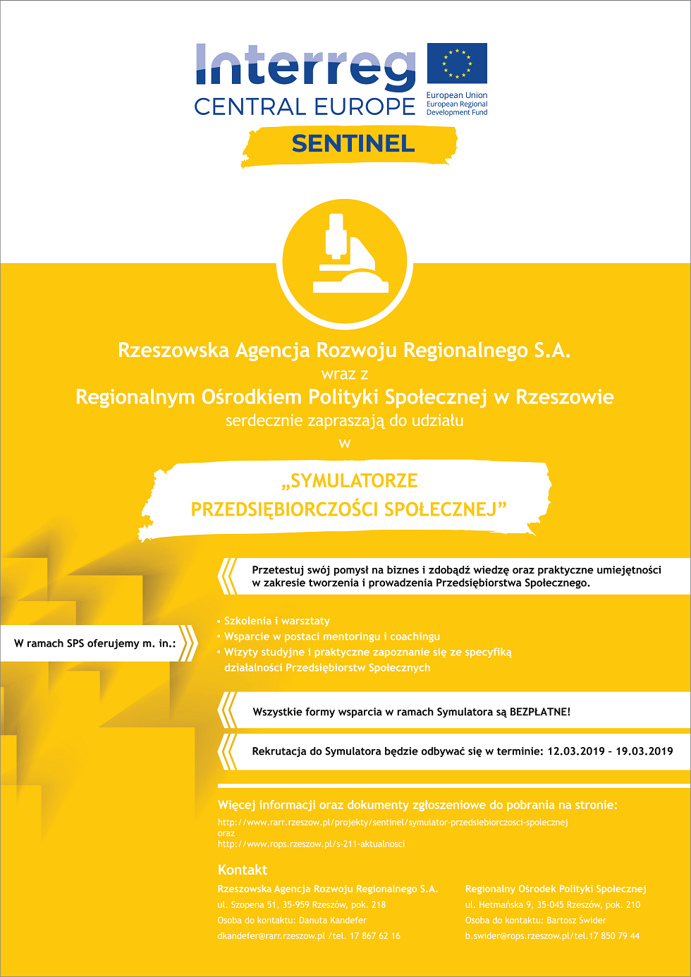 Szczegółowe informacje można uzyskać pod adresem: http://www.rarr.rzeszow.pl/o_nas/aktualnosci/2346,symulator-przedsiebiorczosci-spolecznej-sps-rozpoczecie-rekrutacji.html?PHPSESSID=303cdfe0361251d897def4b48c664607 Kontakt: