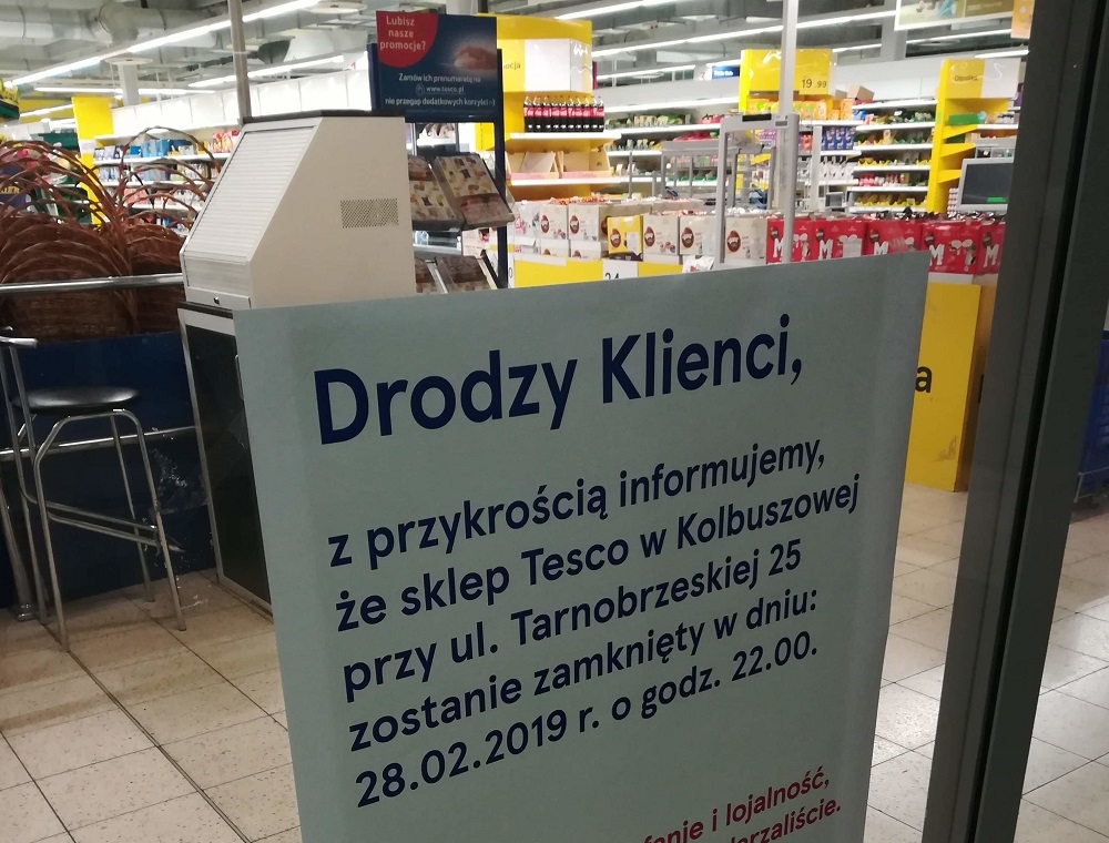 Jeden z największych obiektów handlowych w mieście ma zostać zamknięty w czwartek, 28 lutego, o godz. 22. Jak już informowaliśmy, początkiem stycznia obsługa sklepu została poinformowana przez kierownika regionalnego o planach zamknięcia Tesco.