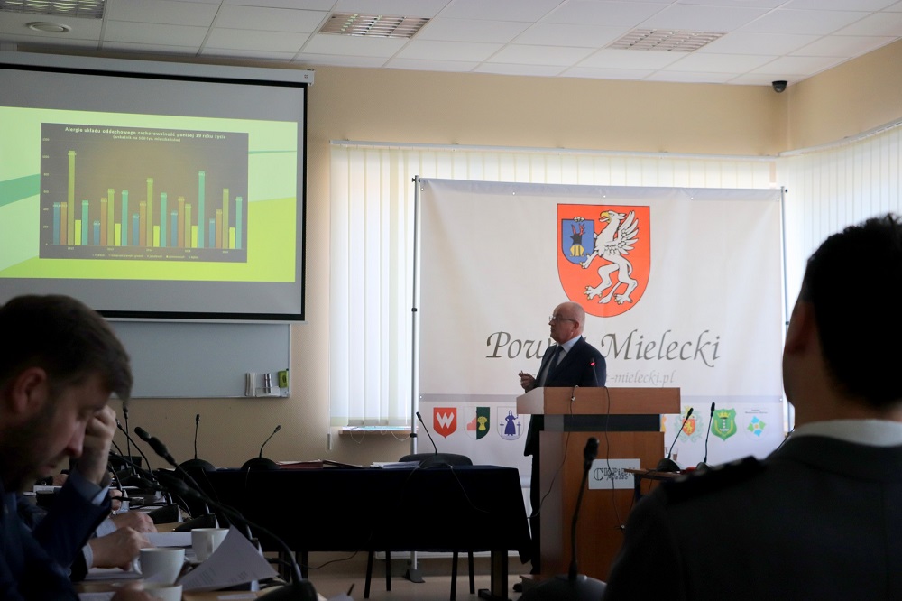 – Od jakiegoś czasu w naszym powiecie dużo mówi się o zanieczyszczeniu powietrza. Wszyscy chcemy żyć w mieście i powiecie, które ma czyste, zdrowe powietrze. Dlatego dziękuję naszym dzisiejszym gościom z Departamentu Ochrony Środowiska Urzędu Marszałkowskiego Województwa Podkarpackiego, którzy - po podjęciu przez radnych takiej zgody - zechcą przybliżyć nam najważniejsze zagadnienia związane ze stanem i jakością powietrza – mówił starosta.