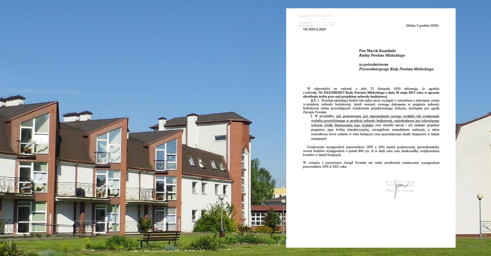 - Bardzo przykro że mimo powszechnego poparcia dla tej propozycji podczas ostatniej sesji ze strony obecnych władz powiatu mieleckiego nie ma woli aby dostosować budżet powiatu tak aby znaleźć choć niewielkie środki na jakiekolwiek podwyzki dla pracowników DPS - komentuje Marek Kamiński