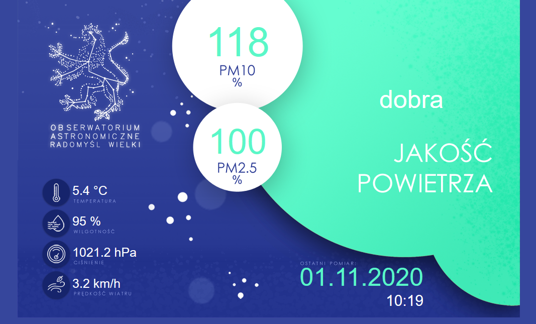 WiadomościObserwatorium Astronomiczne z Radomyśl Wielkiego skonstruowało własny czujnik jakości powietrza! Drugi rok z rzędu uruchamia go dla mieszkańców, którzy będą mogli się przekonać, jakim powietrzem oddychają.