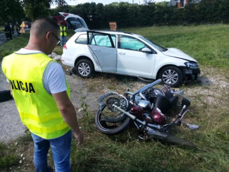Region. Volkswagen zderzył się z motorem. Motocyklista zginął [FOTO]