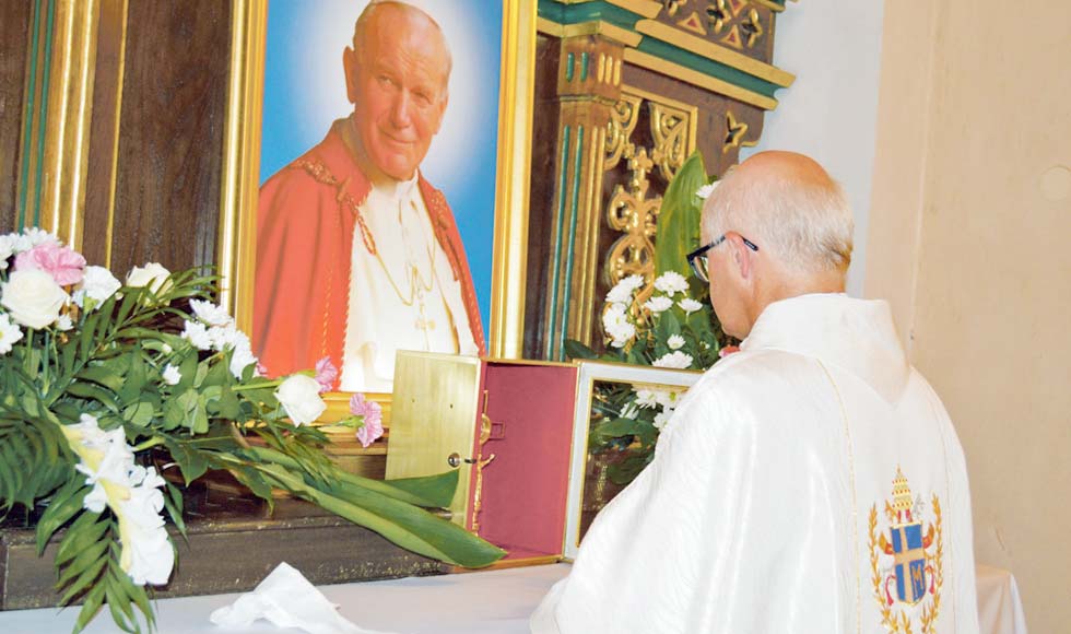 Przed świątynią znajduje się także obelisk upamiętniający Jana Pawła II, więc pragnieniem zarówno mieszkańców, jak i duszpasterzy było, by relikwie znalazły się w kościele św. Anny. Marzenie się spełniło, a przy bocznym ołtarzu, gdzie znajduje się już obraz świętego, można modlić się o wstawiennictwo Jana Pawła II.