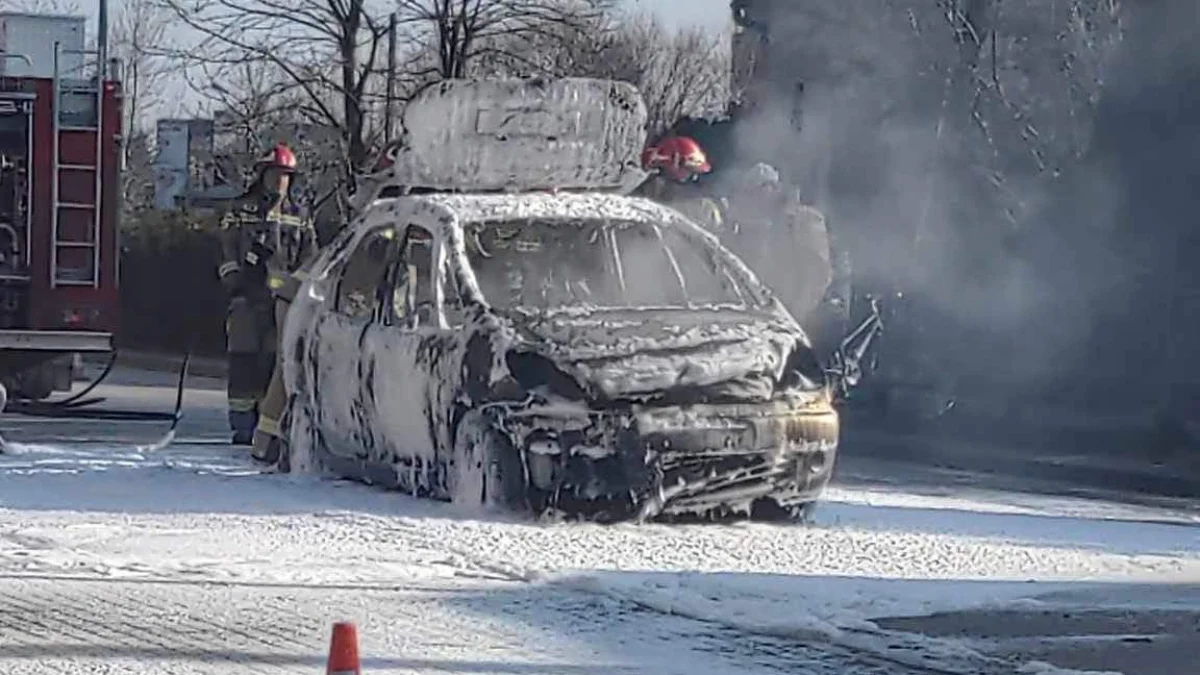 Na miejscu pracowały służby ratunkowe. Straż pożarna ugasiła płonący pojazd.