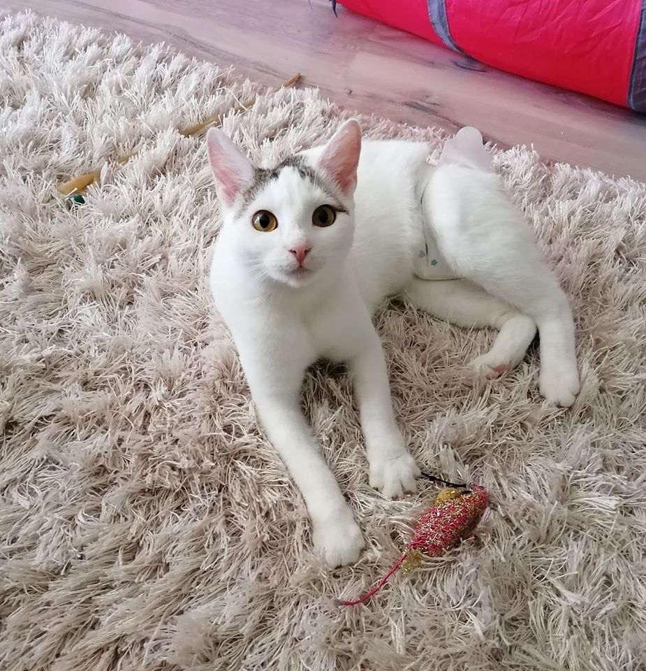 Śnieżka ma 1 rok. Jest zaczipowana, zaszczepiona i wysterylizowana. Testy FIV/FeLV ujemne. Osobie, która zdecyduje się pokochać i zaadoptować Śnieżkę, Stowarzyszenie oferuje stałe zaopatrzenie w pieluszki.
