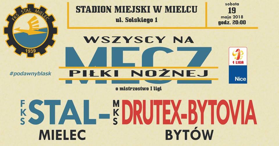 Najbliższy mecz z Drutexem odbędzie się w sobotę, 19 maja, o godzinie 20:00 w Mielcu. Ostatnie spotkanie z drużyną z Bytowa zakończyło się remisem 0:0. Mecz został nawet na chwilę przerwany, gdyż na stadionie Bytovii zgasły jupitery. Mamy nadzieję, że w sobotnim spotkaniu wynik będzie korzystniejszy dla Stali, a kwestie techniczne nie sprawią tylu problemów.