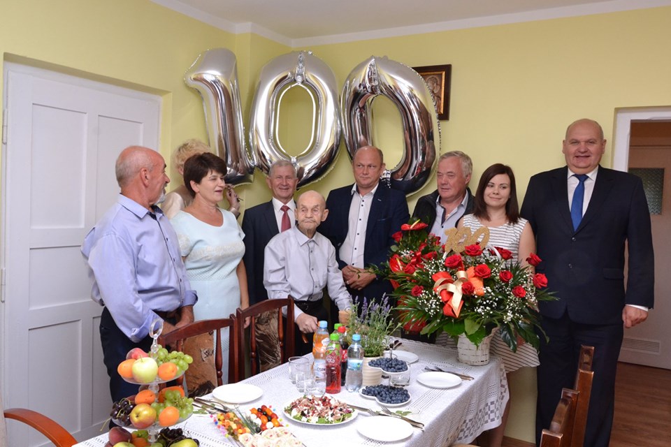 Z życzeniami i okolicznościowymi prezentami do Jubilata pospieszyli m.in. burmistrz Józef Rybiński, zastępca burmistrza Jarosław Godek, radny Andrzej Jasina i sołtys Mariusz Bajor, a także przedstawicielka KRUS.