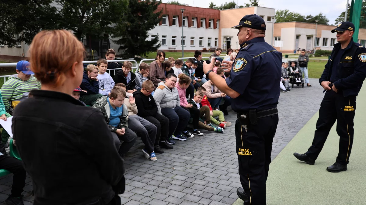 Podczas spotkania dzieci dowiedziały się, jakie obowiązki stoją przed strażą miejską i w jakich sytuacjach można liczyć na jej pomoc. Spotkanie szybko przerodziło się w żywą dyskusję - uczniowie chętnie zadawali pytania, a funkcjonariusze odpowiadali na nie szczegółowo i z dużym zaangażowaniem.