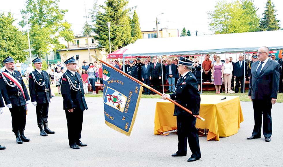 Druh Janusz Konieczny - wiceprezes ZG ZOSP RP, przewodniczący Honorowego Komitetu Fundacji Sztandaru - Leon Getinger oraz komendant gminny - Tomasz Zając uroczyście przekazali OSP w Czerminie nowy sztandar – symbol wskazujący na odwagę strażaków oraz chęć niesienia pomocy innym ludziom.