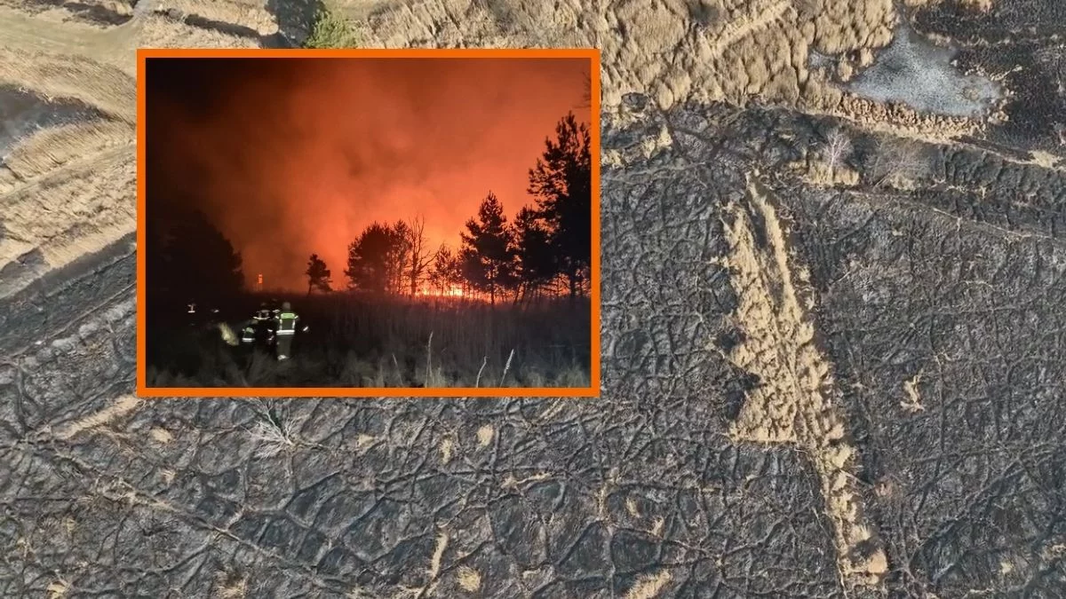 Dziś Nadleśnictwo Mielec opublikowało zdjęcia lotnicze ukazujące skalę zniszczeń. Widok jest przejmujący – na dużym obszarze nieużytków pozostały jedynie wypalone resztki roślinności.