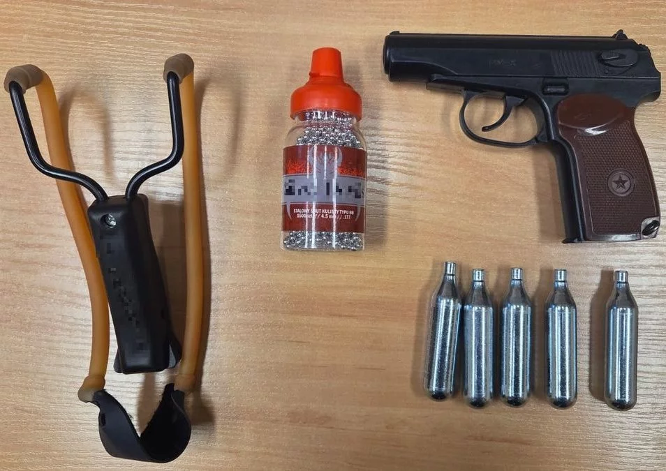 Podczas interwencji policjanci przeszukali plecak 33-latka, znajdując w nim broń pneumatyczną oraz procę. W pobliżu odkryto również uszkodzoną szybę wiaty przystankowej. Mężczyzna został zatrzymany i trafił do policyjnej izby zatrzymań.