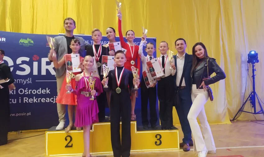 " Alicja Potoczna i Gabriel Krakowski przywieźli z Przemyśla podwójny tytuł Mistrzów Okręgu Podkarpackiego. Byli najlepsi w tańcach standardowych w kategorii 12-13 Open oraz w tańcach latynoamerykańskich w kategorii 12-13 Open." - opowiadają opiekunowie tancerzy.