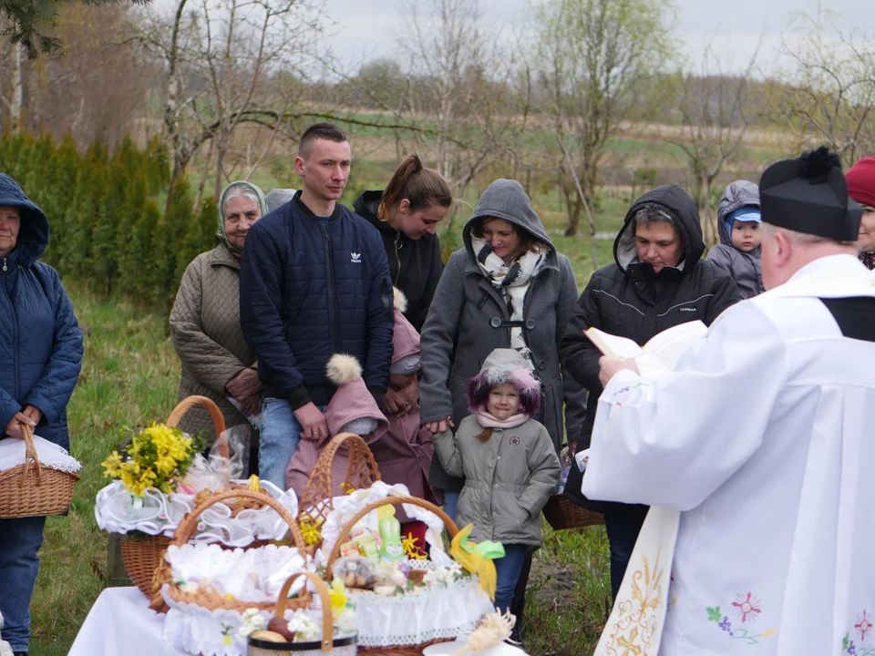 W koszyczkach wielkanocnych, przynoszonych do kościoła, znajdziemy: jajka, chleb, kiełbasę (szynkę), chrzan, sól i pieprz, boczek (mięso) oraz ciasto. Oczywiście nie może zabraknąć również baranka z czerwoną chorągiewką symbolizującą Chrystusa Zmartwychwstałego.