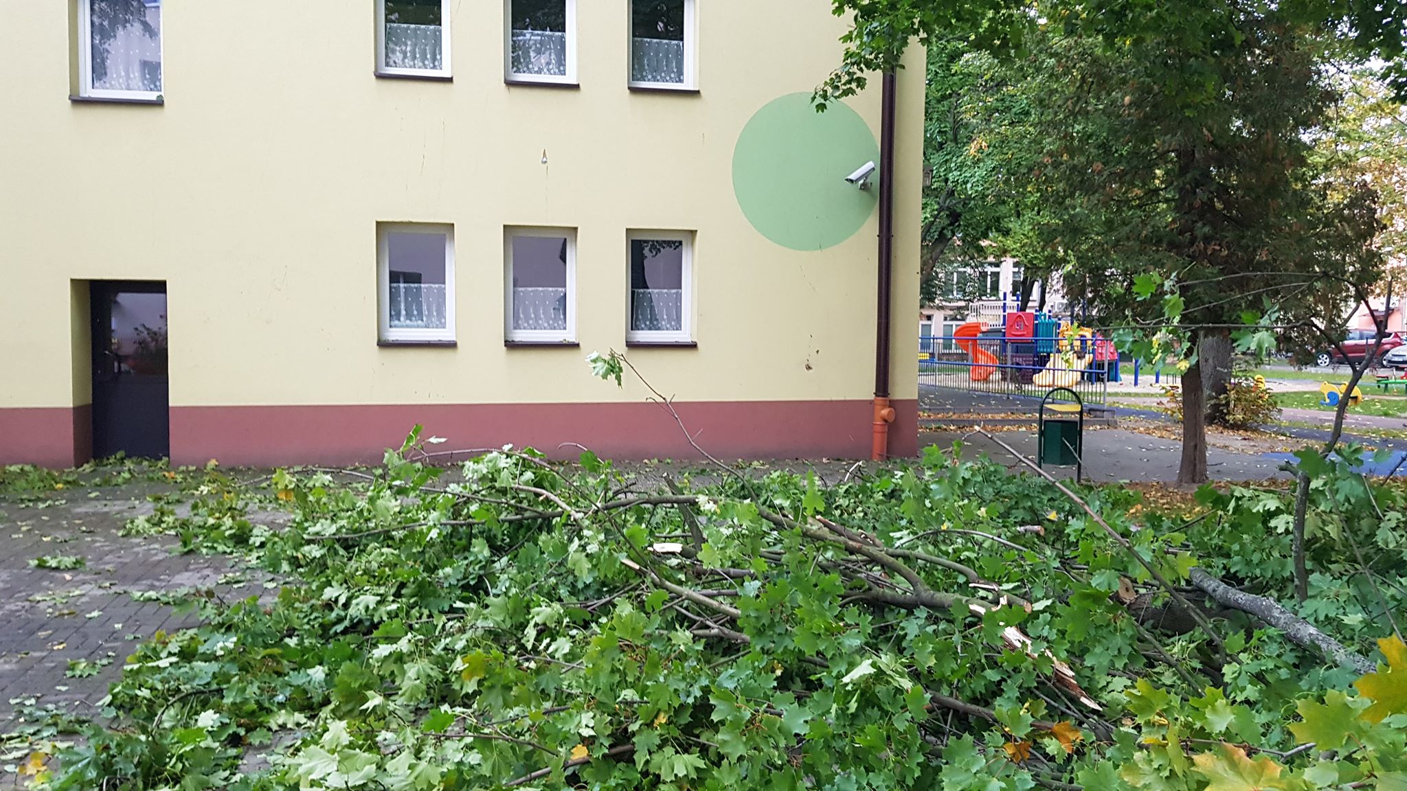 Na miejscu pracują strażacy z jednostki Państwowej Straży Pożarnej. Prognozy przewidują mocne podmuchy wiatru do późnego wieczora.