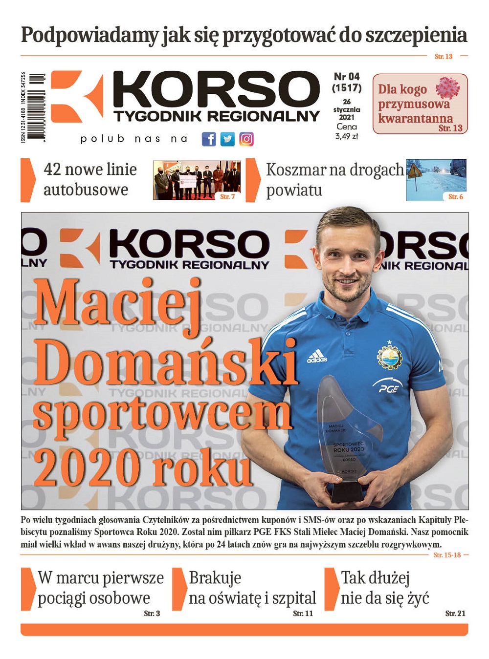 Po wielu tygodniach głosowania Czytelników za pośrednictwem kuponów i SMS-ów oraz po wskazaniach Kapituły Plebiscytu poznaliśmy Sportowca Roku 2020. Został nim piłkarz PGE FKS Stali Mielec Maciej Domański. Nasz pomocnik miał wielki wkład w awans naszej drużyny, która po 24 latach znów gra na najwyższym szczeblu rozgrywkowym.