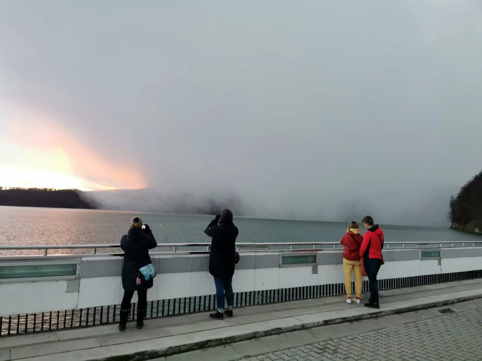Sanoczanin Tomasz Penar wybrał się z rodziną na spacer po zaporze solińskiej. Podziwiając widoki, zauważył coś dziwnego po prawej stronie nad drzewami. Była to biała "zasłona" niczym mgła czy dym, która w szybkim tempie przechodziła na całość krajobrazu. Wszyscy, którzy byli w tym czasie na zaporze, przystanęli i nie mogli uwierzyć w to, co widzą.