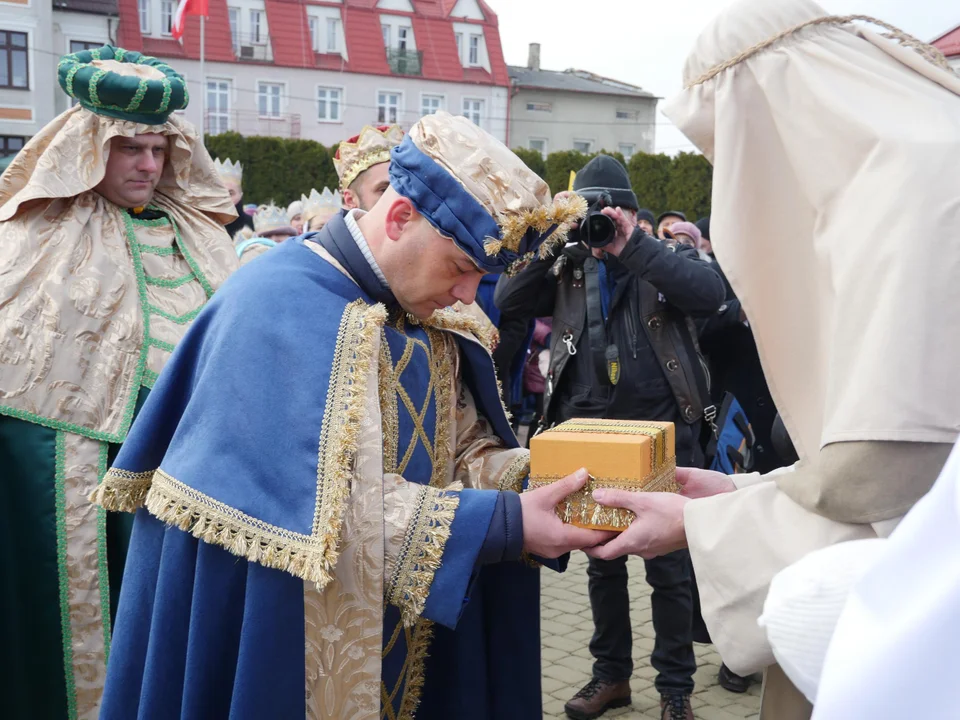 Finał orszaku miał miejsce na rynku, gdzie nastąpiło symboliczne złożenie darów w szopce bożonarodzeniowej oraz wspólne kolędowanie. To właśnie ten moment zgromadził największą liczbę osób – rynek wypełnił się mieszkańcami, którzy przyszli, by wspólnie przeżyć ten wyjątkowy dzień i zatrzymać się na chwilę w świątecznym klimacie. Wielu było chętnych, by zrobić sobie pamiątkowe zdjęcie z Trzema Królami i świętą Rodziną.