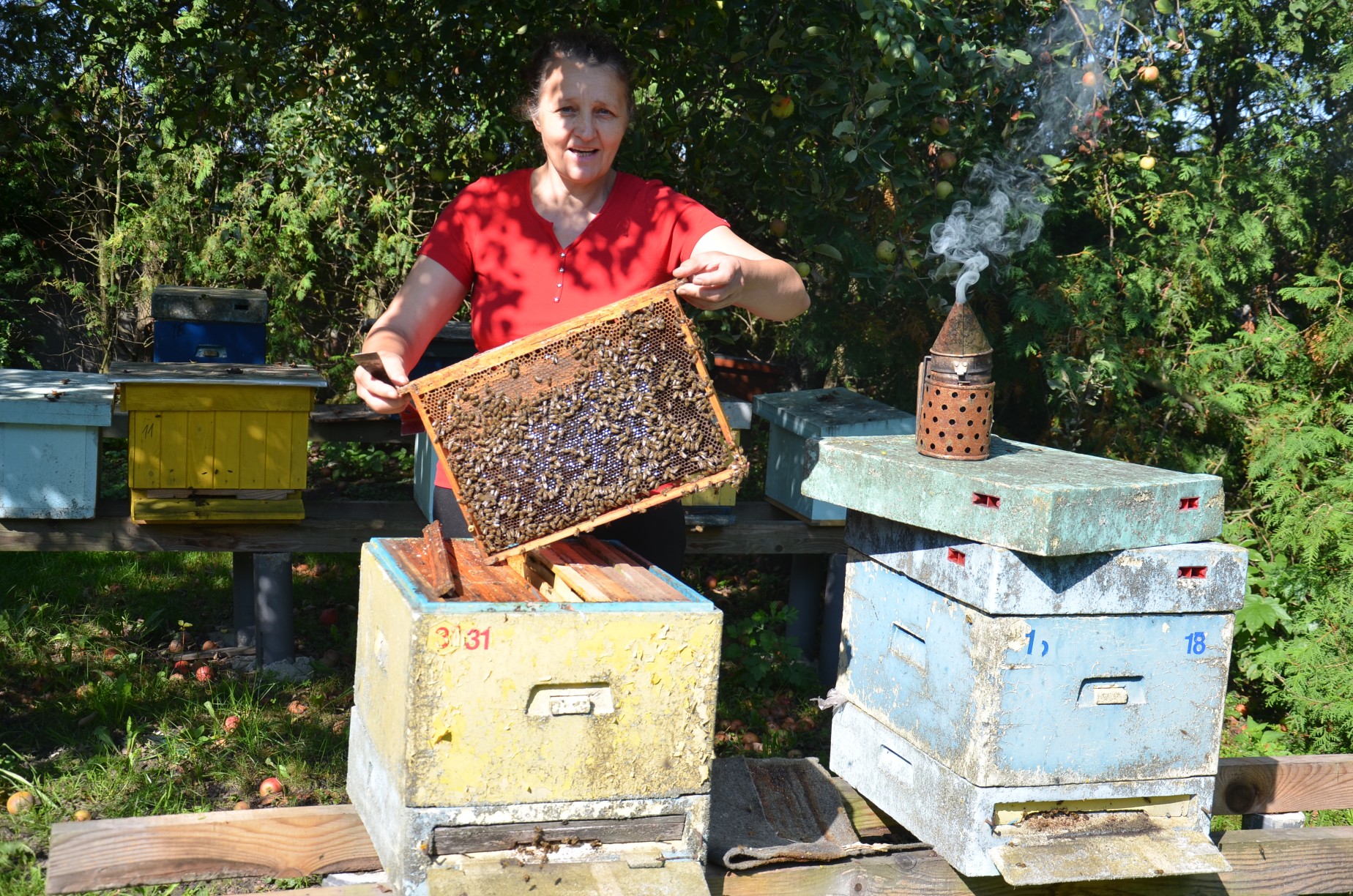 - Ostatnim pożytkiem na naszym terenie jest nawłoć. W tym roku nawłoć zakwitła wyjątkowo szybko. Obecny sezon był trochę przyspieszony, wszystko działo się szybciej. Po okresach zbiorów trzeba składać gniazda, karmić pszczoły, zastosować leczenie i przygotować je do przezimowania – przypomina Elżbieta Flis.