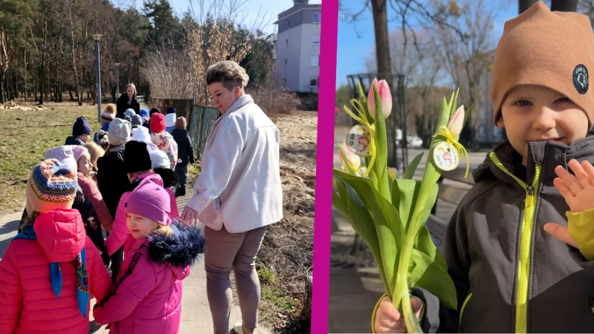 Pod opieką swoich nauczycielek dzieci wybrały się na spacer w słoneczny, niemal wiosenny dzień. Zabrali ze sobą bukiet tulipanów i nimi obdarowywali przechodzące mieszkanki naszego miasta. Do każdego tulipana dołączone były także ciepłe życzenia - dzieci życzyły kobietom szczęścia, zdrowia oraz spełnienia marzeń, nie tylko w dniu ich święta. Dzieci rok temu rozdawały lizaki, a w tym roku postawiły na kwiaty.
