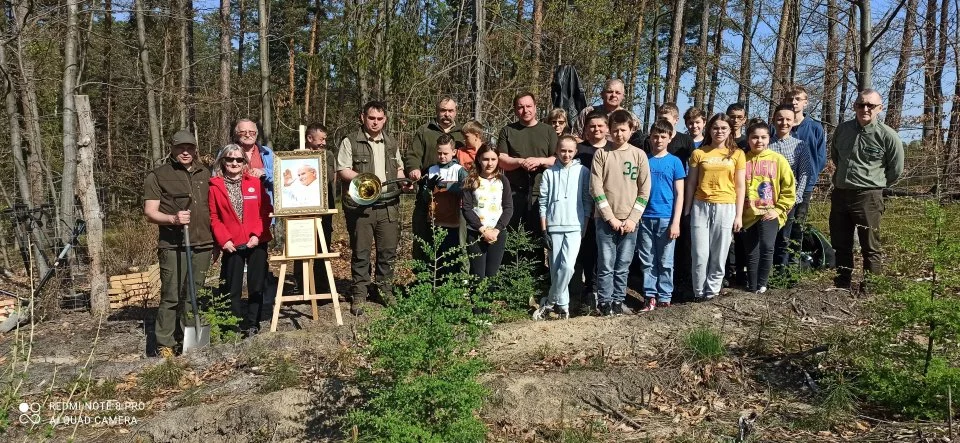 Na powierzchni 38-arowej, pośród rosnących modrzewi, wszyscy uczestnicy posadzili 500 sadzonek buka, wzbogacając w ten sposób różnorodność biologiczną leśnego środowiska. Nadleśniczy, zwracając się do zgromadzonych uczniów i pracowników, poinformował, że ten posadzony las zostanie dedykowany wielkiemu Polakowi - świętemu Janowi Pawłowi II.
