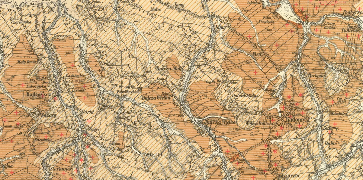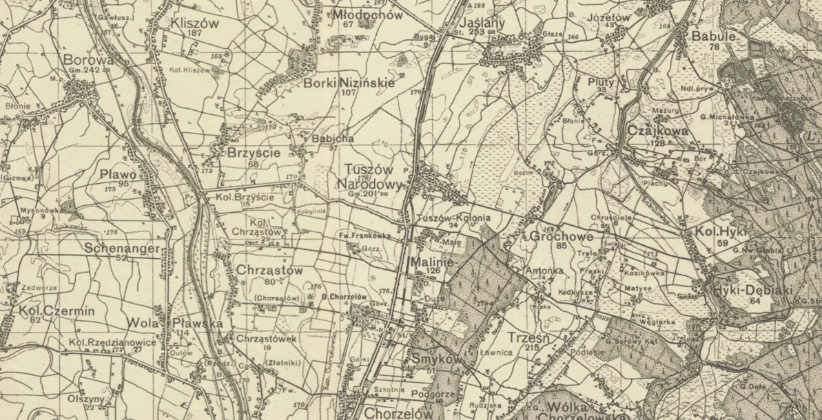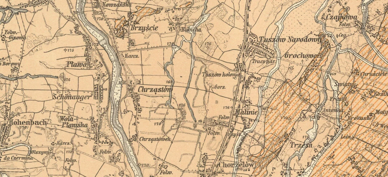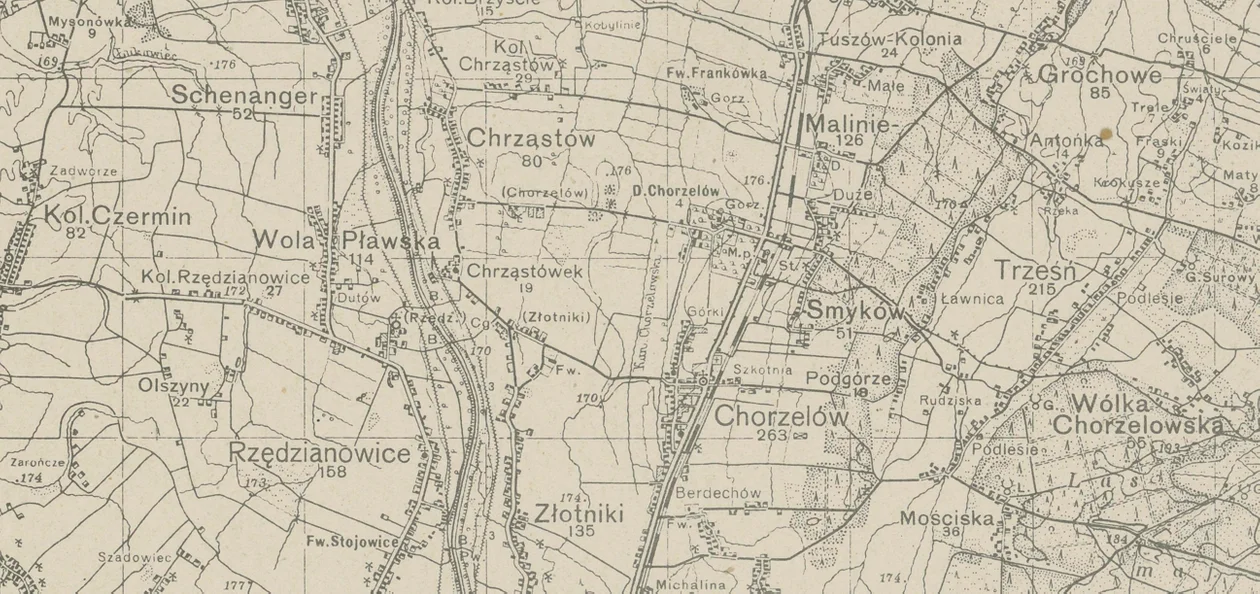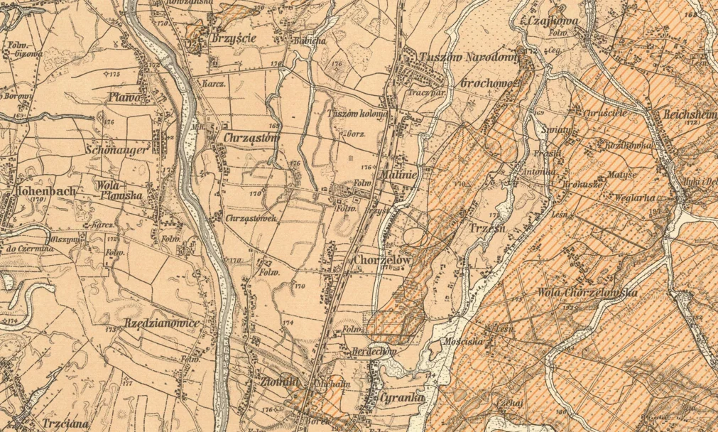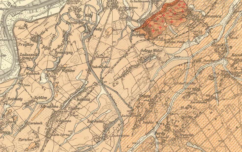 Z kolei mapy z przełomu XIX i XX wieku pokazują moment intensywnych zmian – powstawanie nowych dróg, mostów i linii kolejowych, rozwój Mielca jako ośrodka rzemieślniczego, a później przemysłowego. Widać na nich jeszcze w pełni wiejski krajobraz okolicznych gmin, zanim pojawiła się infrastruktura Centralnego Okręgu Przemysłowego i rozrastające się miasto wchłonęło sąsiednie wsie.