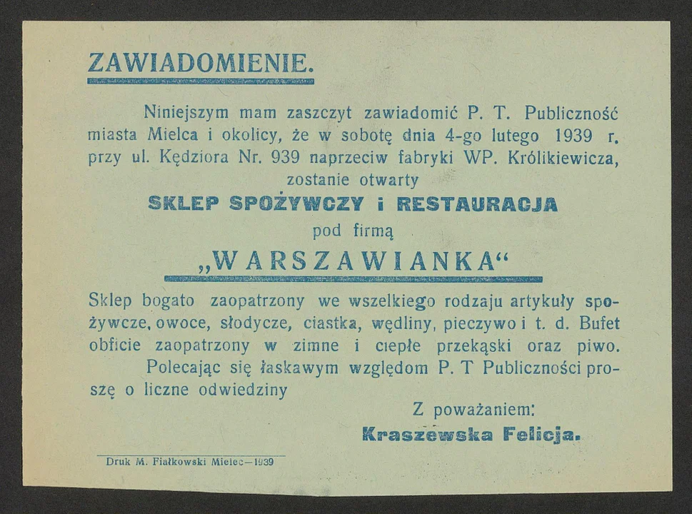 W archiwach natrafić można również na ogłoszenia prasowe z tamtych czasów – o targach, licytacjach majątków, zaginionych zwierzętach czy otwarciu nowych karczm. Dają one wgląd w codzienne życie mieszkańców sprzed ponad stu lat – ludzi, dla których Mielec i okolice były tętniącym życiem punktem na mapie Galicji.