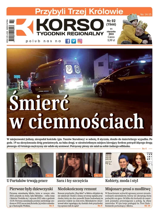 W miejscowości Jaślany, nieopodal kościoła (gm. Tuszów Narodowy) w sobotę, 8 stycznia, doszło do śmiertelnego wypadku. Po godz. 19 na skrzyżowaniu dróg powiatowych, na łuku drogi, w nieoświetlonym miejscu kierujący fordem potrącił idącego drogą pieszego. 62-letniego mężczyzny nie udało się uratować. Potrącony pieszy nie miał na sobie żadnego odblasku.