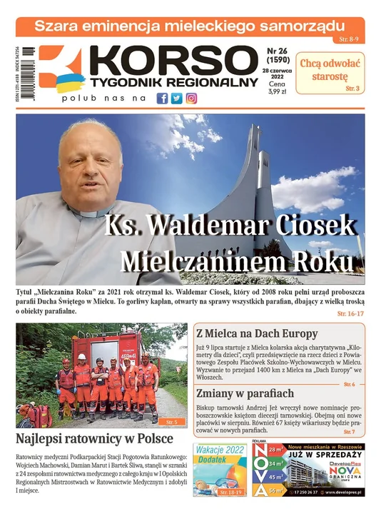 Tytuł "Mielczanina Roku" za 2021 rok otrzymał ks. Waldemar Ciosek, który od 2008 roku pełni urząd proboszcza parafii Ducha Świętego w Mielcu. To gorliwy kapłan, otwarty na sprawy wszystkich parafian, dbający z wielką troską o obiekty parafialne.