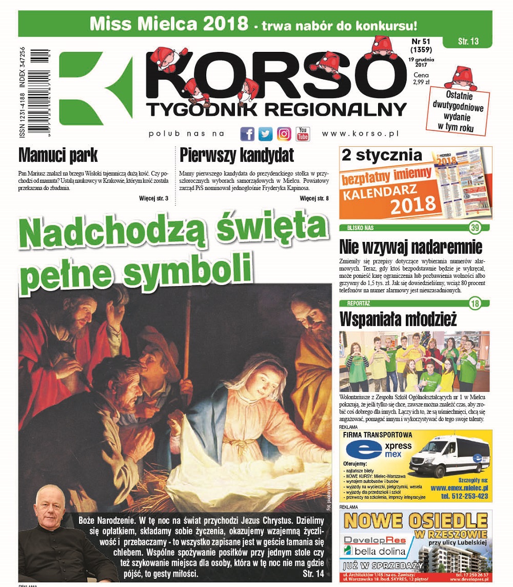 Przygotowaliśmy specjalne dwutygodniowe wydanie tygodnika! To ostatnie w tym roku Korso, które przygotowaliśmy specjalnie dla Was! Następne wydanie 2 stycznia 2018 roku! W noworocznym wydaniu kalendarz.