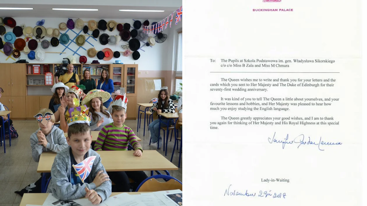 Uczniowie inspirowani zwyczajami brytyjskimi, z radością uczestniczyli w "Herbatkach z królową", hucznie świętowali jej urodziny, tworzyli kapelusze i korony, wzorując się na królewskich nakryciach głowy. Od 2017 roku regularnie wysyłali listy do Pałacu Buckingham, a było ich ponad 3000. Zawsze otrzymywali odpowiedzi, w których były podziękowania za piękne kartki, za wysiłek włożony w ich wykonanie oraz za pamięć i życzenia.