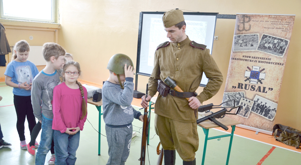 Natomiast 10 marca rekonstruktorzy SRH "RUSAL" odwiedzili Szkołę Podstawową im. Korpusu Ochrony Pogranicza w Bolesławcu (pow. wieruszowski), aby również i tam wspomnieć sylwetkę rtm. Lucjana Woźniaka - ułana i partyzanta łączącego swą osobą tak odległe od siebie tereny Polski.