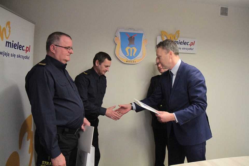 Na ręce prezydenta Jacka Wiśniewskiego podziękowania za zaangażowanie, poświęcenie i chęć współpracy ze strony funkcjonariuszy mieleckiej Straży Miejskiej złożył Komendant Powiatowy Policji w Mielcu Jacek Juwa.