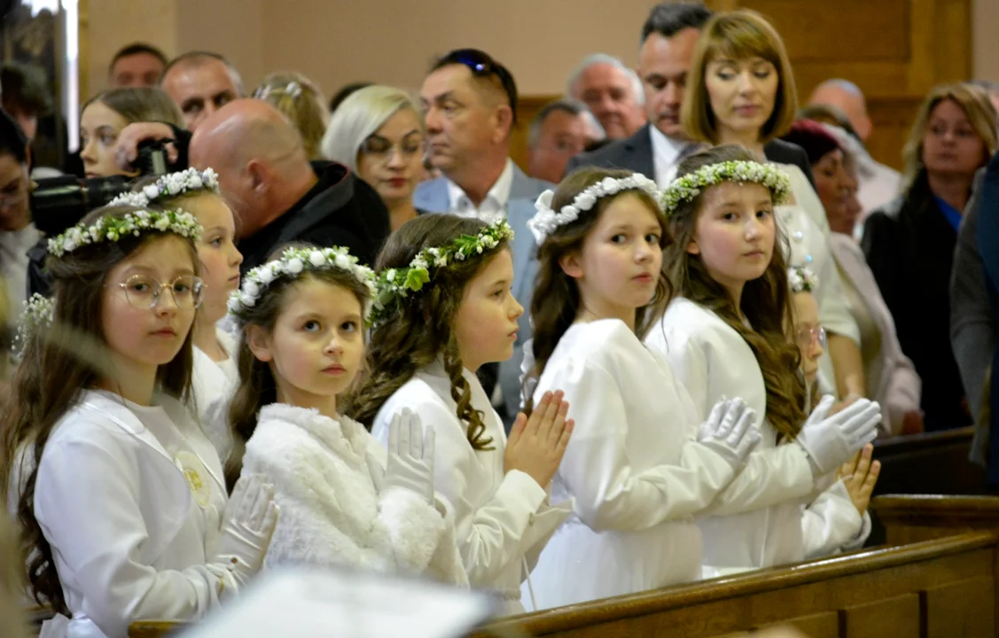 Na kilkanaście minut przed rozpoczęciem mszy dzieci ustawiły się tradycyjnie w dwóch rzędach przed świątynią. Towarzyszyli im rodzice, chrzestni oraz najbliżsi, którzy wspólnie przeżywali tę wyjątkową chwilę. Po powitaniu przez kapłana, dzieci ubrane w białe sukienki i alby ze skupieniem zajęły miejsca w ławkach, aby w pełni uczestniczyć w eucharystii.
