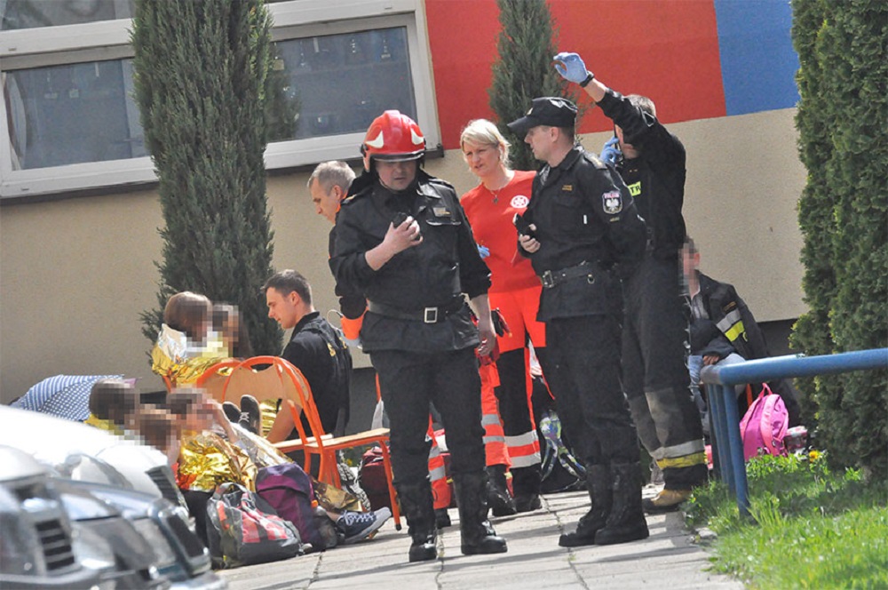 Stało się to podczas drugiego w tym dniu uroczystego apelu dla dzieci z klas 4-6. Około godziny 10.30 nagle kilkoro uczniów zgłosiło objawy bardzo złego samopoczucia skarżąc się m.in. na bóle głowy i brzucha. Natychmiast dyrekcja szkoły wezwała na pomoc pogotowie ratunkowe. Rozpoczęto akcję ratunkową, gdyż podobne objawy zaczęli zgłaszać kolejni uczniowie.